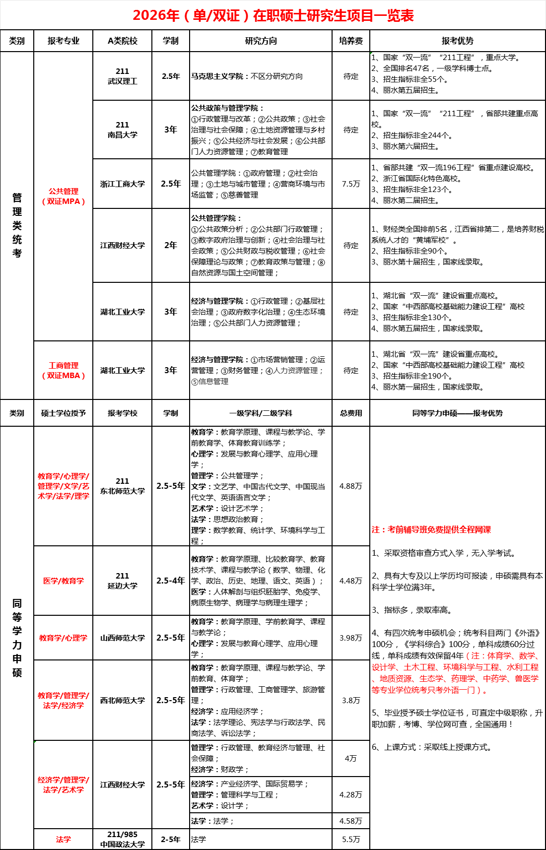 2026年(單雙證)在職碩士研究生招生項目總覽
