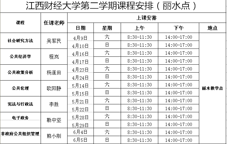 江西財(cái)經(jīng)大學(xué)MPA課程安排