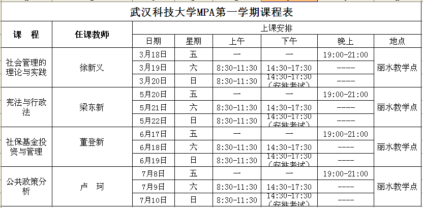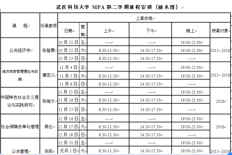 武漢科技大學(xué)MPA課程安排