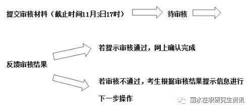 在10月30日至11月3日17時期間,各位考生完成審核材料上傳后1至3天返回審核結果考生及時登錄網上確認系統查看審核結果。1.考生將相關證明材料用手機拍照后上傳至確認系統,完成網上信息審核申請。(具體需提交的材料和照片采集標準詳見附件1和附件2)。4.考生可登錄網上確認系統查看審核結果,一般包含以下四種情況。(1)“待審核”:表示提交確認申請尚未審核,請考生耐心等待。(2)“待補充材料”:表示提交材料中有不符合要求的,請考生根據提示修改或補齊材料或持報考材料到現場進行報考材料審核??忌峤谎a充材料后,須再次登錄研招網上信息確認系統查看審核結果。(3)“審核通過”:表示通過本次信息審核,無需再到現場辦理,可以在規(guī)定時間內打印準考證參加考試。