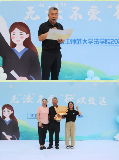 出席典禮的領(lǐng)導(dǎo)和嘉賓有浙江師范大學(xué)學(xué)生處處長王淑娉教授,法學(xué)院院長吳卡教授,法學(xué)院黨委書記查穎教授,法學(xué)院黨委副書記祝偉華,法學(xué)院黨委委員、院長助理張品副教授,法學(xué)院黨委委員、紀(jì)委書記錢嘉寧博士,法學(xué)院黨委委員趙鑫博士。各系主任、學(xué)科、學(xué)位點(diǎn)負(fù)責(zé)人、各畢業(yè)班班主任、研究生導(dǎo)師代表、各行政辦公室主任和學(xué)工辦全體輔導(dǎo)員,以及2023屆全體畢業(yè)生參加典禮。學(xué)工辦主任、2019級(jí)輔導(dǎo)員王茂盛主持。